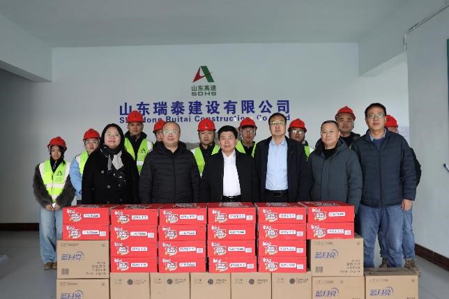 2月11日,公司党委副书记、总经理、董事刘汉兴一行到瑞泰公司S236辛滨线滨城绕城段改建工程施工一标段项目经理部慰问一线员工。公司党委委员、工会主席、职工董事于光,党委委员、副总经理、安全总监张继军陪同。