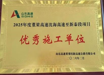 近日,山东高速董梁沈新高速公路有限公司组织召开2025年度表彰大会,由工程公司一分公司承建的董梁一标项目,凭借卓越的综合管理水平与突出的建设成效,一举荣获“优秀施工单位”“安全生产先进集体”两项重磅荣誉。